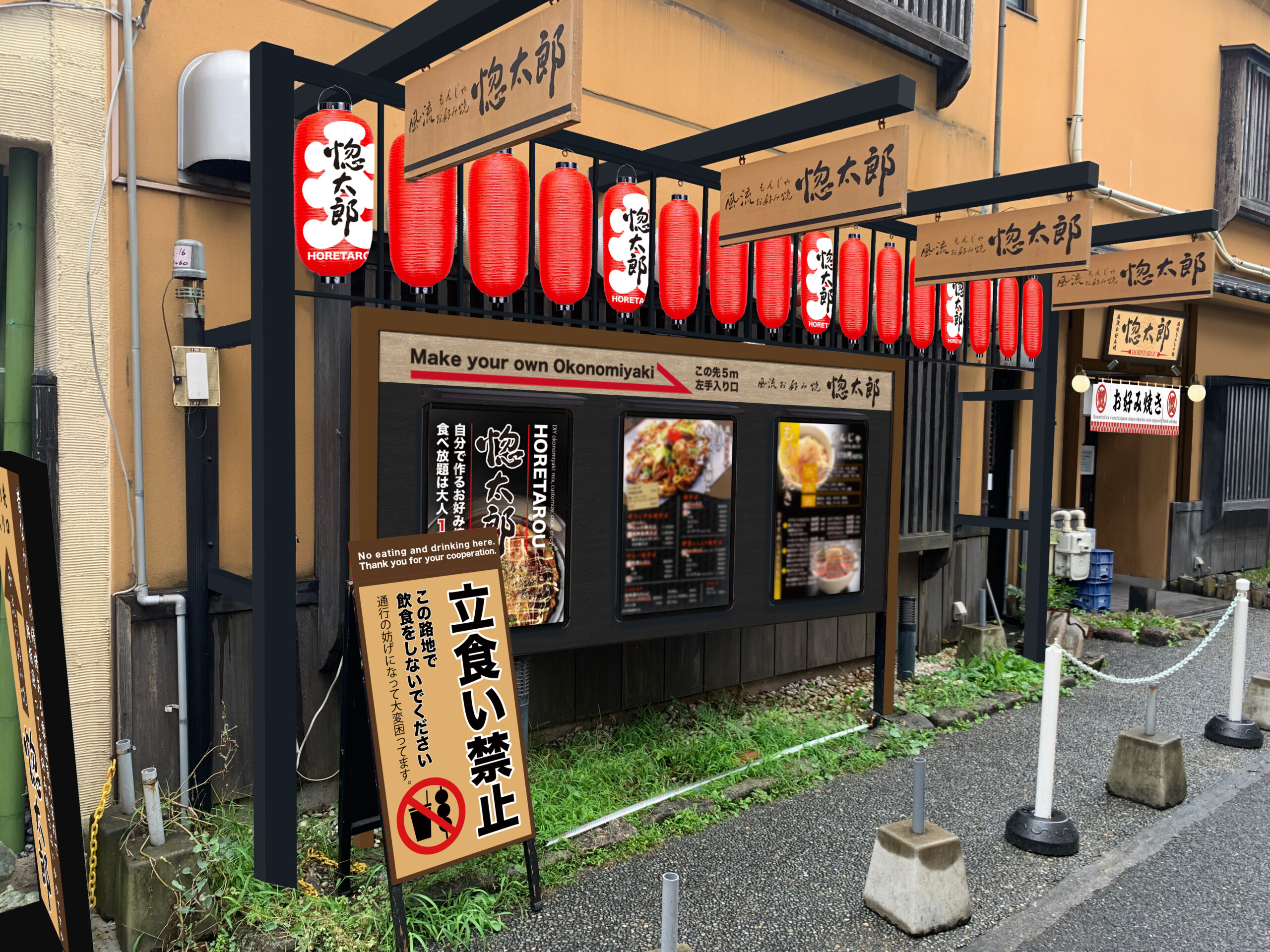 20年ほど前にオープンしたお好み焼き店の屋外看板や外壁塗装が傷んできましたので、店頭デザインと改修工事をさせて頂きました。