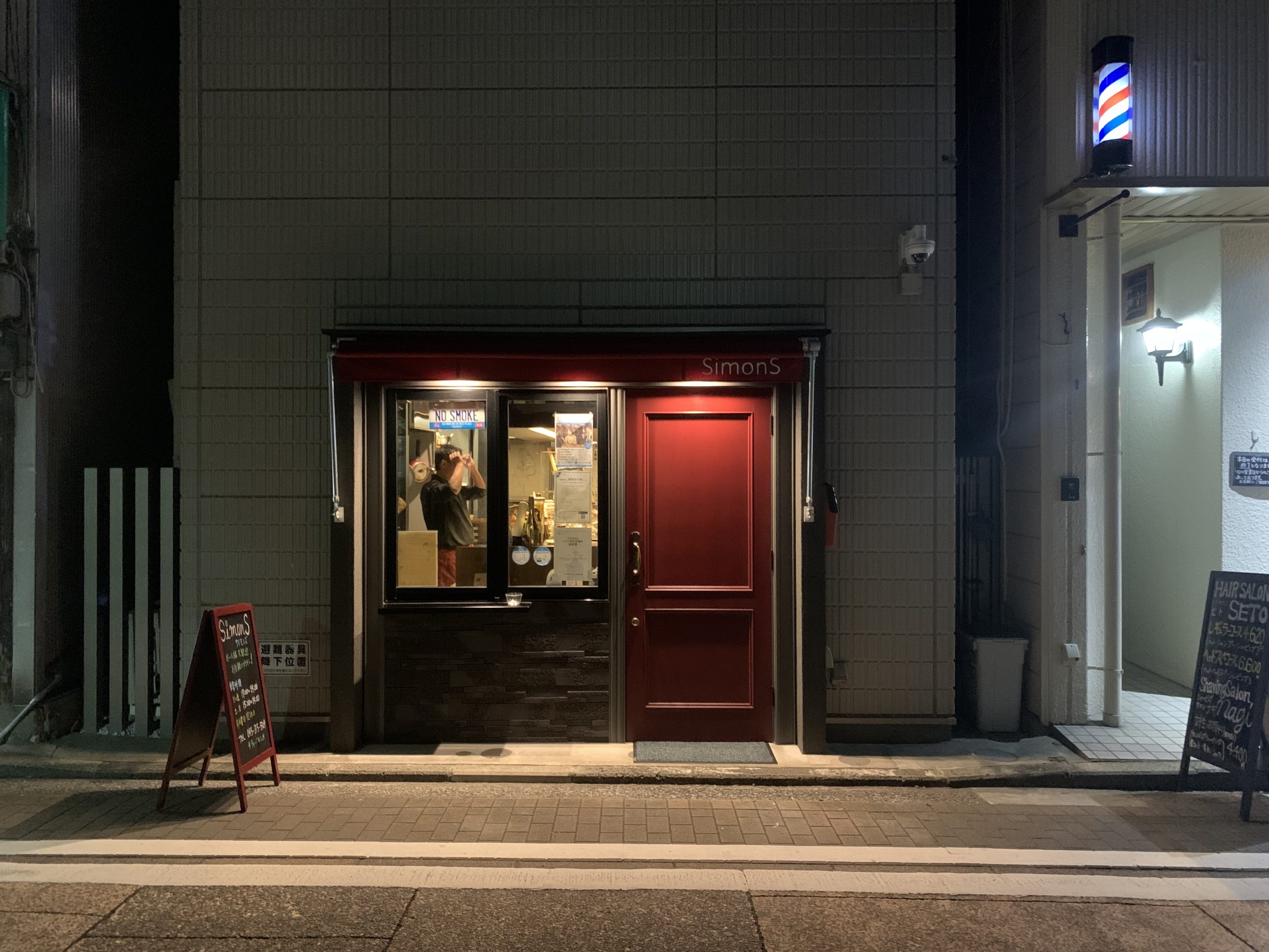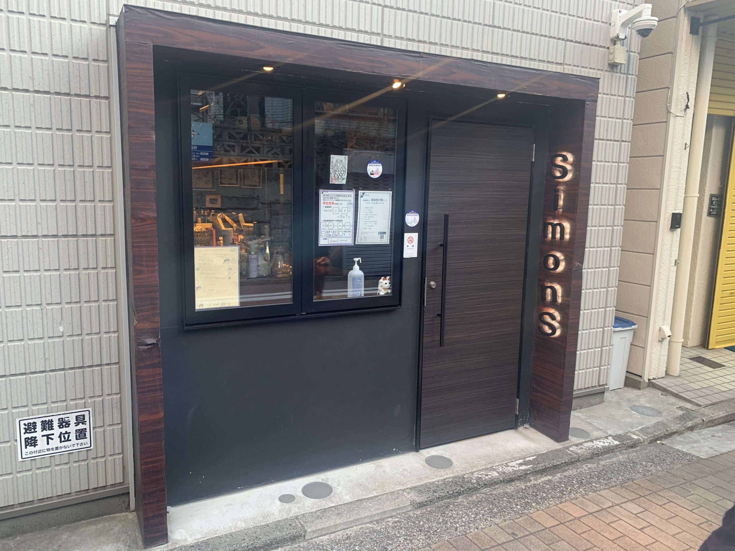 (改修工事後の写真) 入口前に日差し避けのオーニングを設け、このオーニングのカラーと扉のカラーに統一感を持たせて、入口にインパクトを与えました。扉のカラーは葡萄酒色を選定し、イタリアンバルの大人な雰囲気を演出しております。 改装後店頭写真になります。