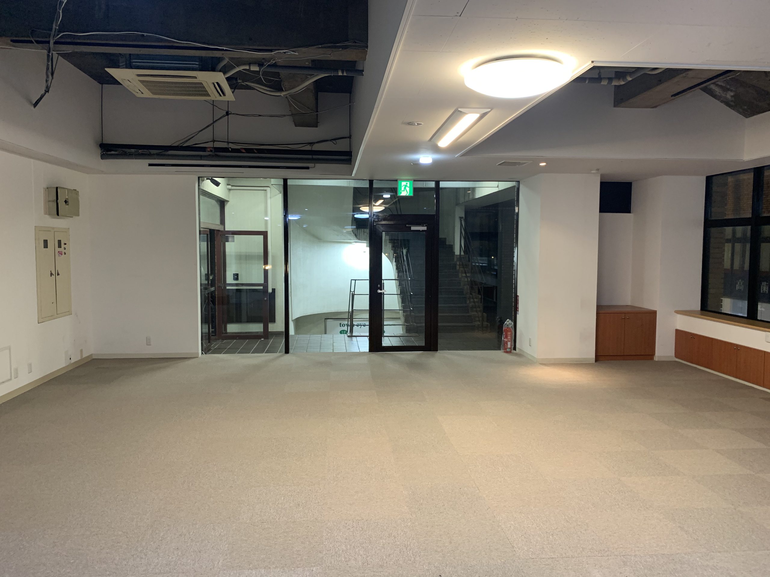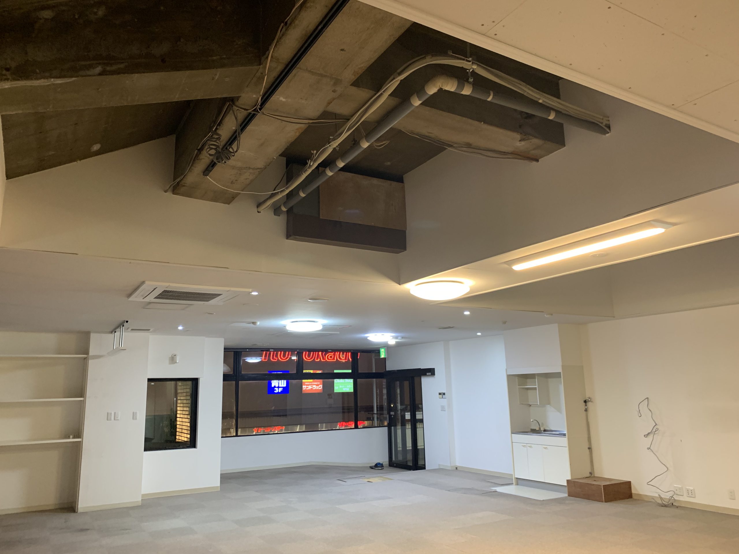 (改修工事前の写真) 室内ゴルフ練習施設だった場所を事務所として再利用する為に、新たにデザイン、内装工事させて頂きました。