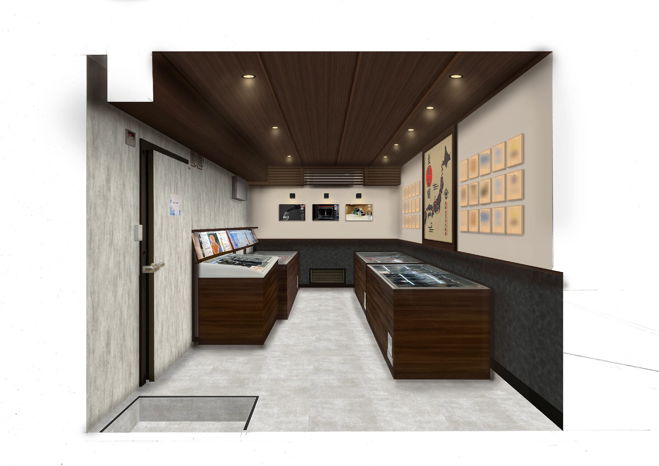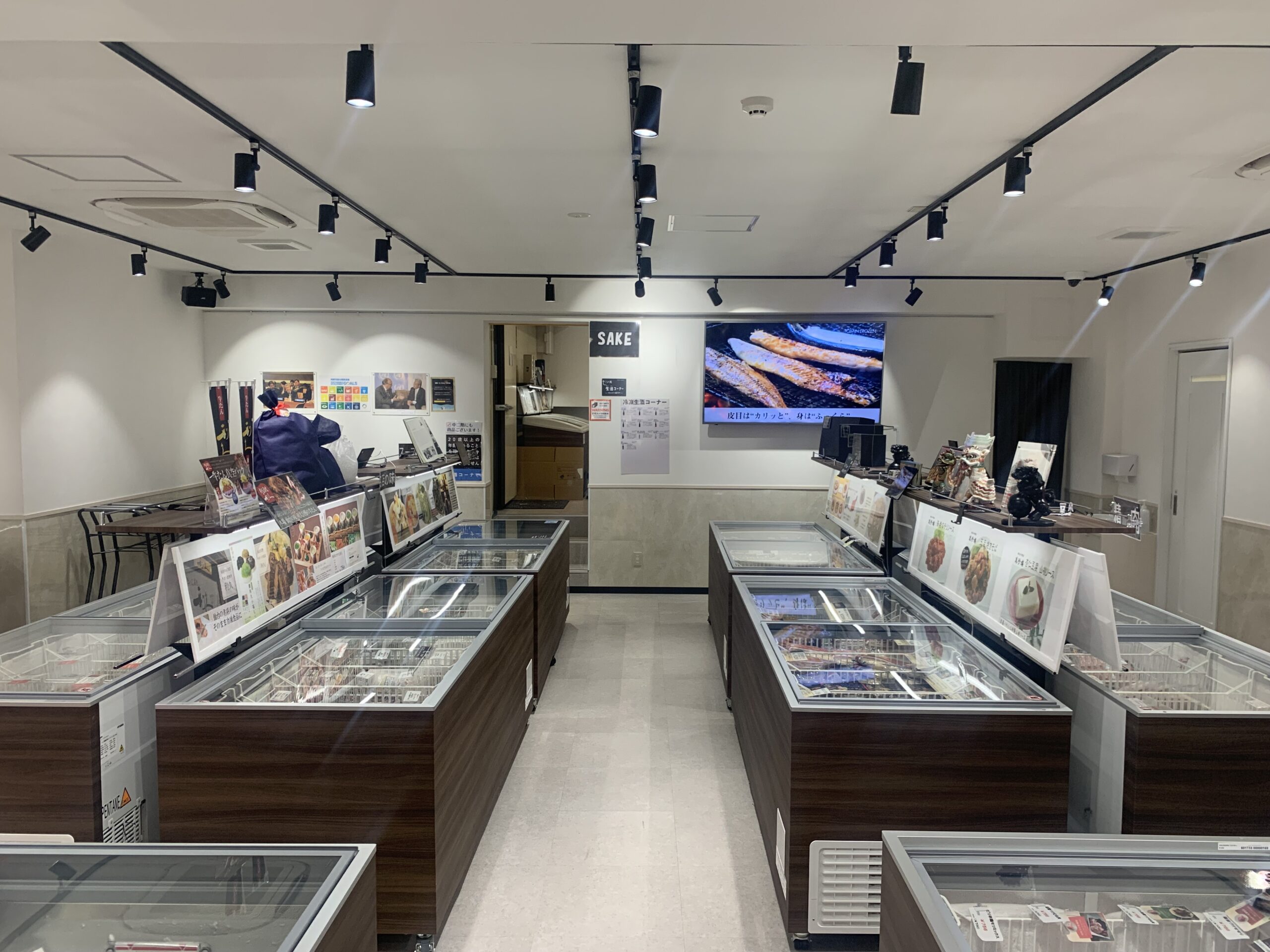 今回の現場は、冷凍食品を販売している広い売り場スペースの最奥にある狭小スペースになる。今までも、その狭小エリアは販売スペースとして利用していたが、入口間口も小さく、お客様はそのスペースに気が付かないまま、通り過ぎてしまっている状況であった。この入口の壁面を商品の有効展示スペースとして利用する事でお客様に足止めして頂き、奥の個室に気が付かせて、この革新的な商品を手に取ってもらい、購入して頂くまでの流れを作る事が今回の業務に注力したところである。